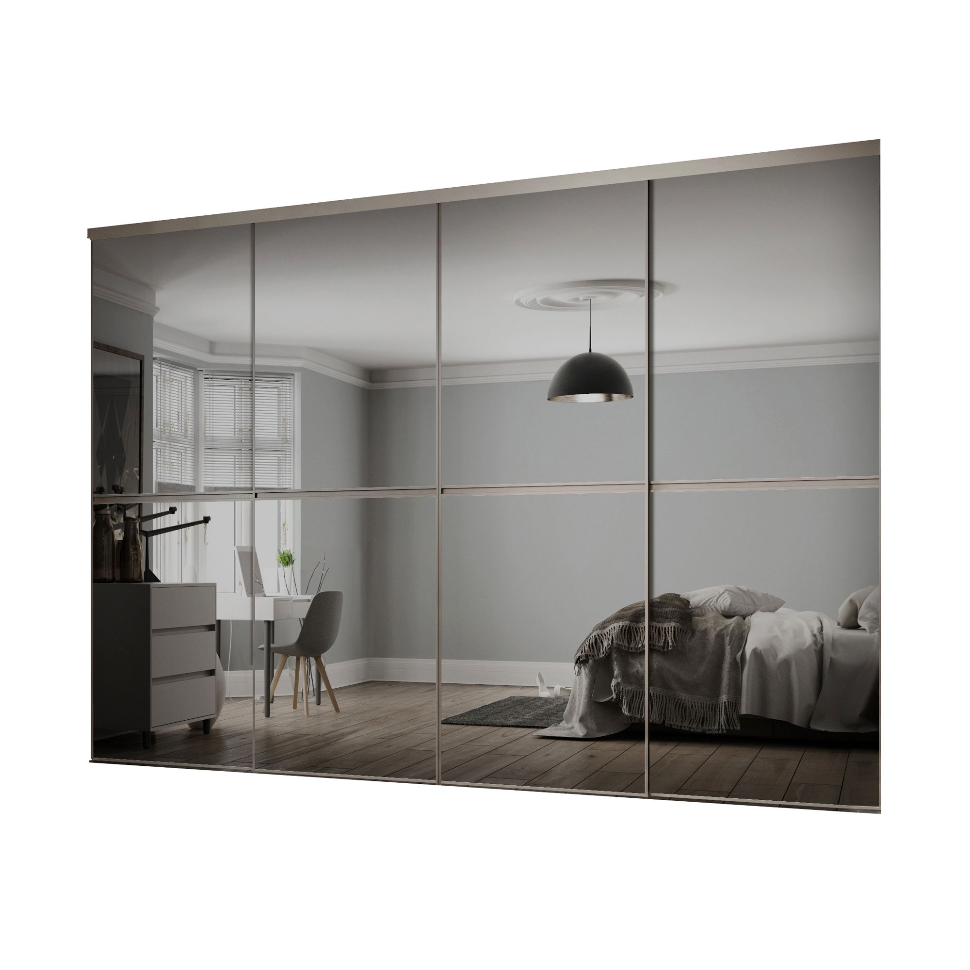 Minimalist Mirrored Grey 4 Door Sliding Wardrobe Door Kit H 2260mm W 2400mm Departments Diy At B Q